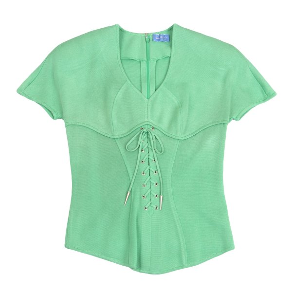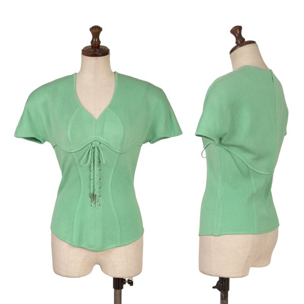 ティエリーミュグレーThierry Mugler コットン混フロントレースアップセットアップ ミントM S位商品コード:K-160663コンディションランクコンディション詳細トップス:肩パッドあり。