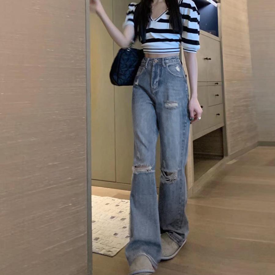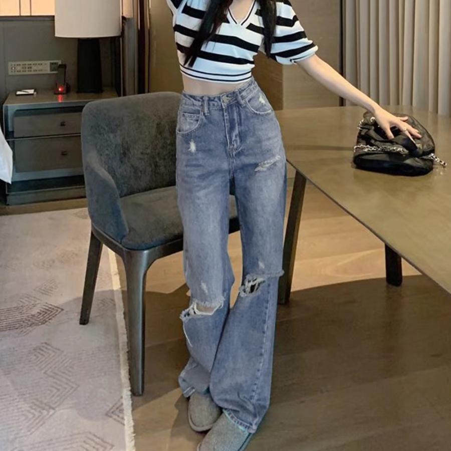 素材:綿82.6%+ポリエステル17.4%カラー:ブルーサイズ:S/M/L/XL[S]着丈:約106cm 股下:約76cm ウエスト:約62cm ヒップ:約92cm もも周り:約56cm[M]着丈:約106cm 股下:約76cm ウエスト:約66cm ヒップ:約96cm もも周り:約58cm[L]着丈:約106cm 股下:約76cm ウエスト:約70cm ヒップ:約100cm もも周り:約60cm[XL]着丈:約106cm 股下:約76cm ウエスト:約78cm ヒップ:約104cm もも周り:約62cm裏地:なし伸縮性:なし透け感:なし生産国:中国韓国ファッション ダメージジーンズ 体型カバー ウォッシュジーンズ ストレートデニムパンツ 美脚脚長パンツ ロングパンツ穿くだけでこなれた大人カジュアルが確立、ダメージ加工のヴィンテージ感溢れるハイウエストデニムパンツストンとしたストレートシルエットは脚のラインを拾わず、縦ラインを強調して美脚脚長魅せするスマートなロング丈ジーパン1枚でサマになる主役級アイテムなので、シンプルな