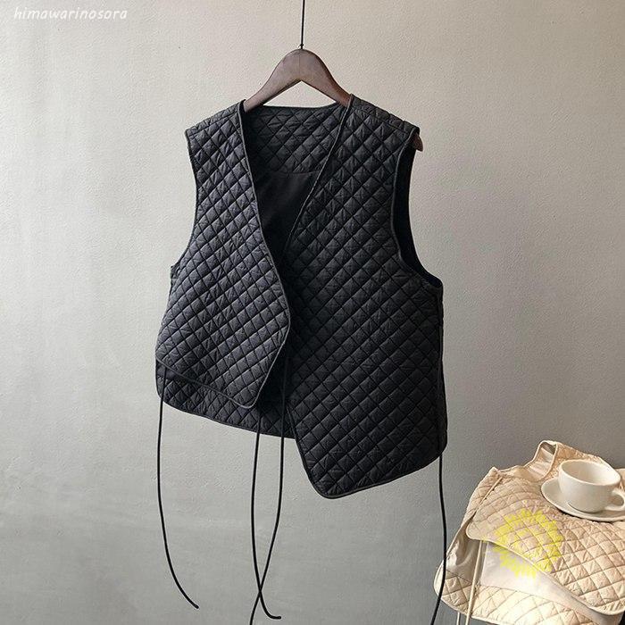 キルティング ベスト レディース Vネック 中綿入り 秋 冬 キルティングベスト ジレ ショート丈 アウター 大人 防寒 軽量 無地 可愛い 出かけ OL 通勤 オフィス 40代 30代 20代 女性 女の子 着痩せ ゆったり 暖かい 体型カバー デザイン アシンメトリーhimawarinosorayanshuangmkxz277