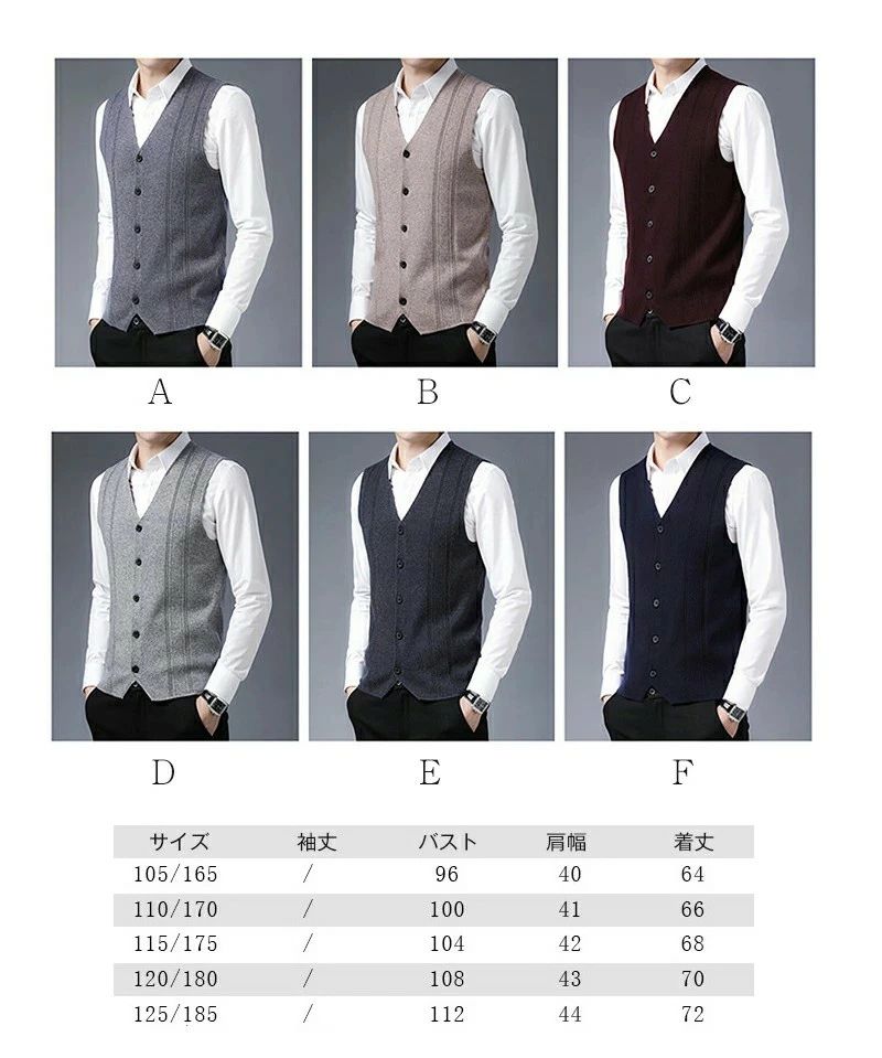 商品詳細 商品仕様 ◆商品名:ニットベスト メンズ Vネック 秋 冬 ◆素材:ウール6% アクリル ◆カラー:写真参考/A〜F 注意事項