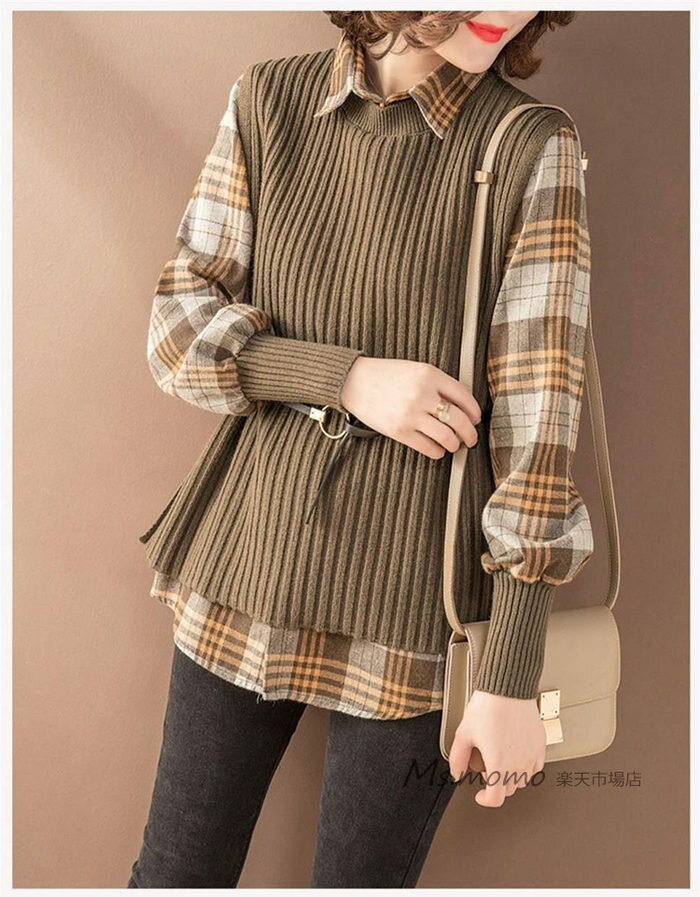 【サイズ】:(約) *着丈:67cm(M) 68cm(L) 69cm(XL) 70cm(2XL) *`肩幅:38cm(M) 39cm(L) 40cm(XL) 41cm(2XL) *`バスト:104cm(M) 108cm(L) 112cm(XL) 116cm(2XL) *`袖丈:57cm(M) 58cm(L) 59cm(XL) 40cm(2XL) 連携キーワード:ニットベストセット レディース 40代 春秋冬 長袖 チェック柄ブラウス ニットベストセットアップ 無地 ニットベスト カジュアル韓国風 ゆったりシャツ 通勤 着痩せ 体型カバー 秋服