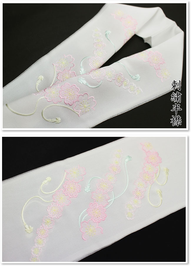 【楽天BOX受取対象商品】 イベント&特集刺繍半衿 半襟 白/色 桜に組紐商品説明 襟元のオシャレはとても大切ですね。