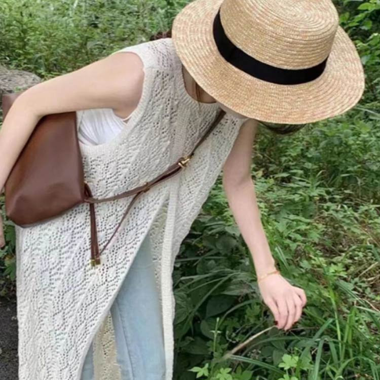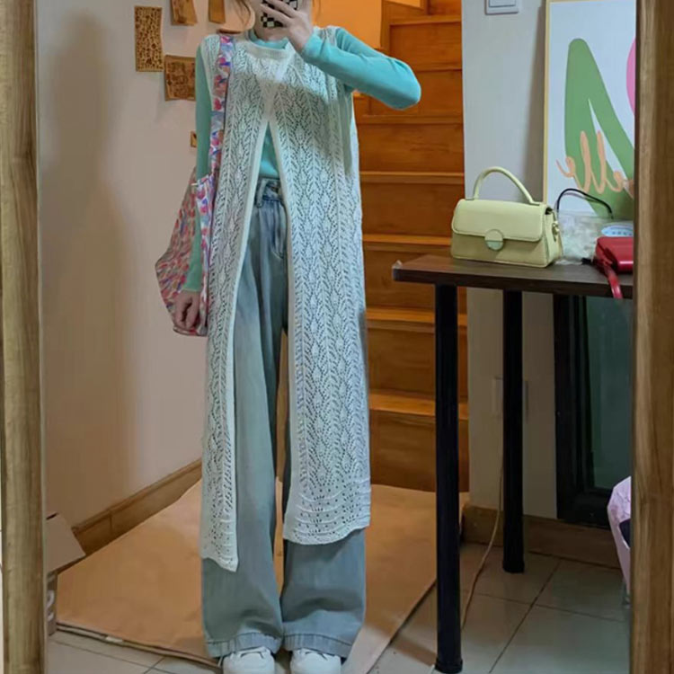 【前後2WAY】繊細な模様の透かし編み前後2WAYロングジレが登場。