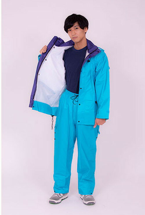【特長】防水、レインコート、レインウェア、雨、自転車、デリバリー、警備、安全、作業着、上下セット、男女兼用、バイク、配達、防災、災害、通勤通学、カラフル