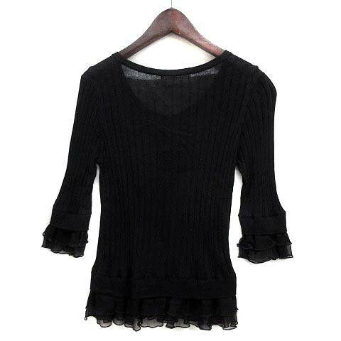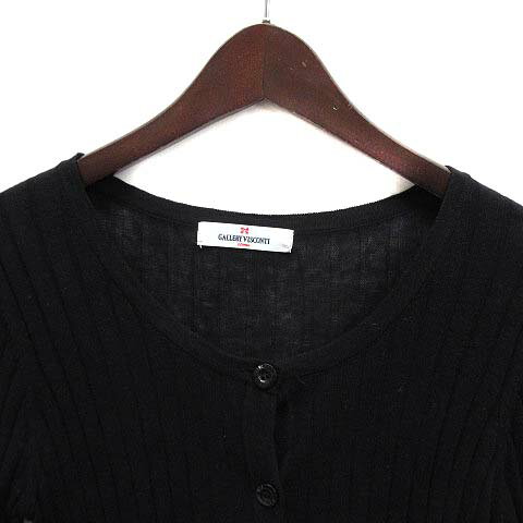 【中古】ギャラリービスコンティ GALLERY VISCONTI シフォン フリル リブ ニット カーディガン 七分袖 ブラック 黒 2 レディース