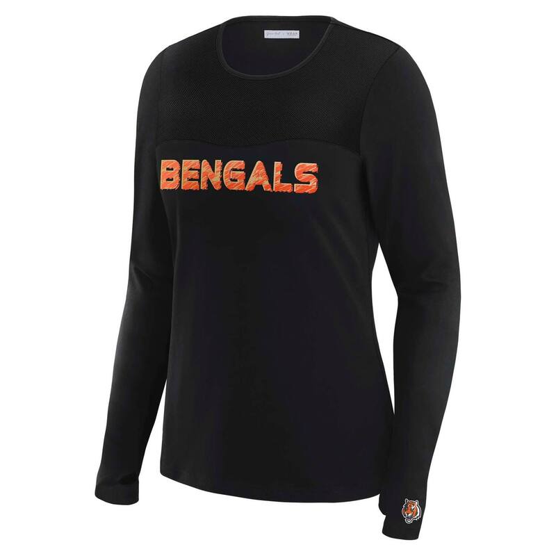 ■商品名 Women's WEAR by Erin Andrews x Gracie Hunt Black Cincinnati Bengals Mesh Panel Long Sleeve T-Shirt