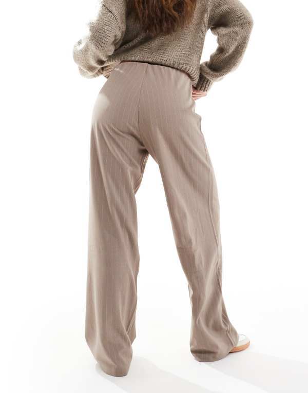 ■商品名 Vero Moda pull on wide leg pants in beige pinstripe