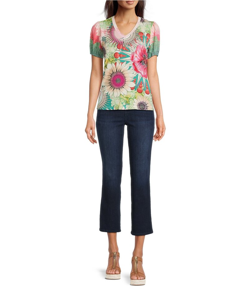 ■商品名 The Janie Favorite Emily Abstract Floral Print V-Neck Short Puff Sleeve Knit Tee