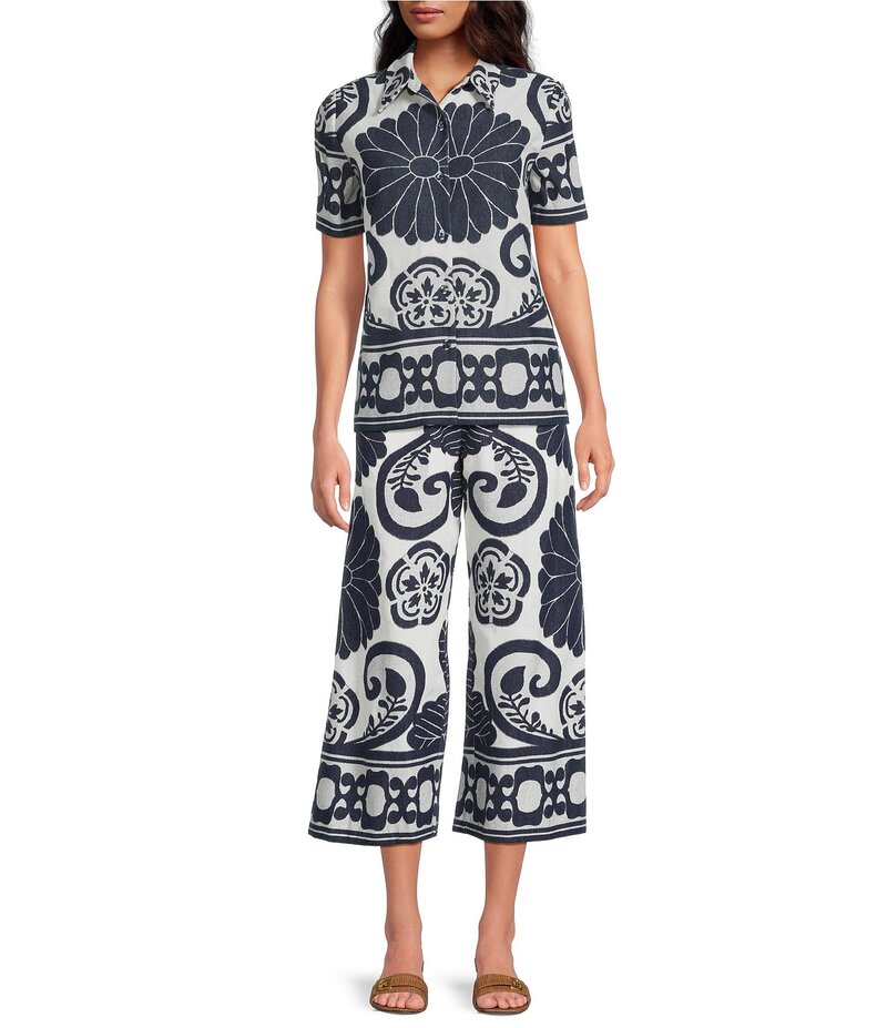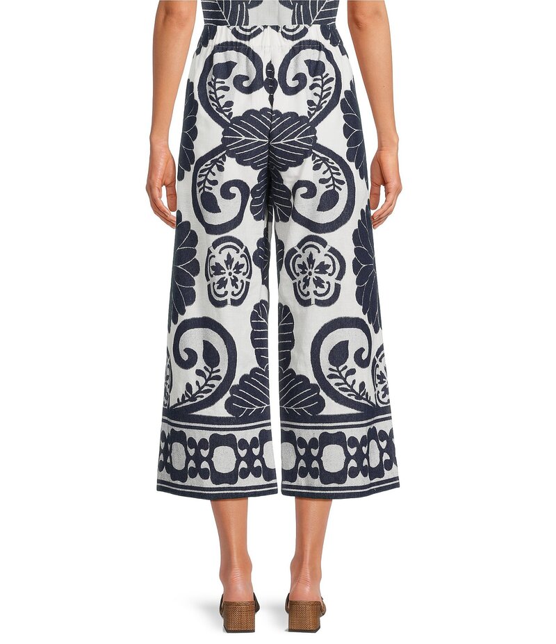 ■商品名 Estella Coordinating Border Print Clip Jacquard Flat Front Wide Leg Crop Pants