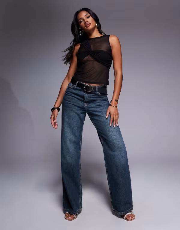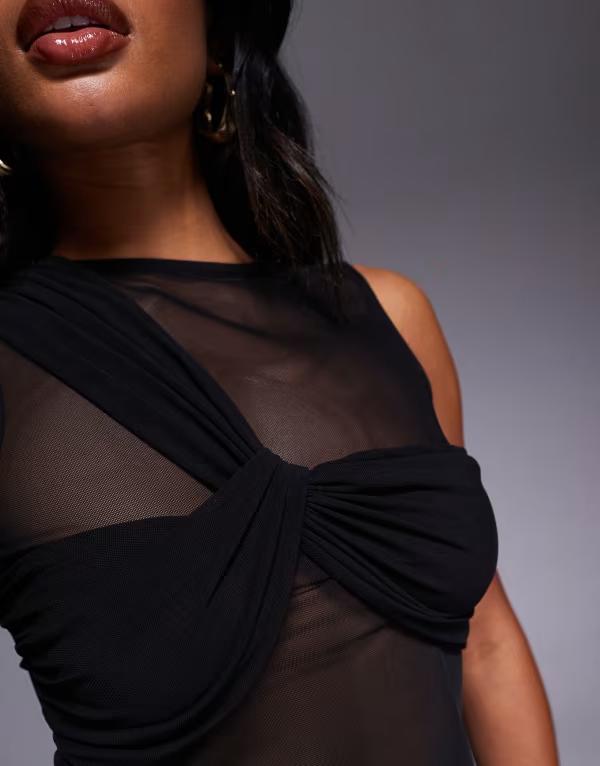 ■商品名 ASOS DESIGN mesh layered twist tank top in black