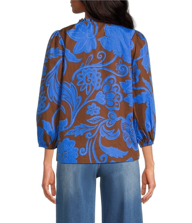 ■商品名 Ofelia Floral Print Kiley Ruffle Split V-Neck Balloon Sleeve Blouse