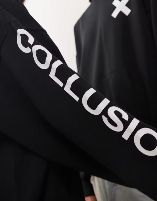 ■商品名 COLLUSION Unisex logo boxy hoodie in black
