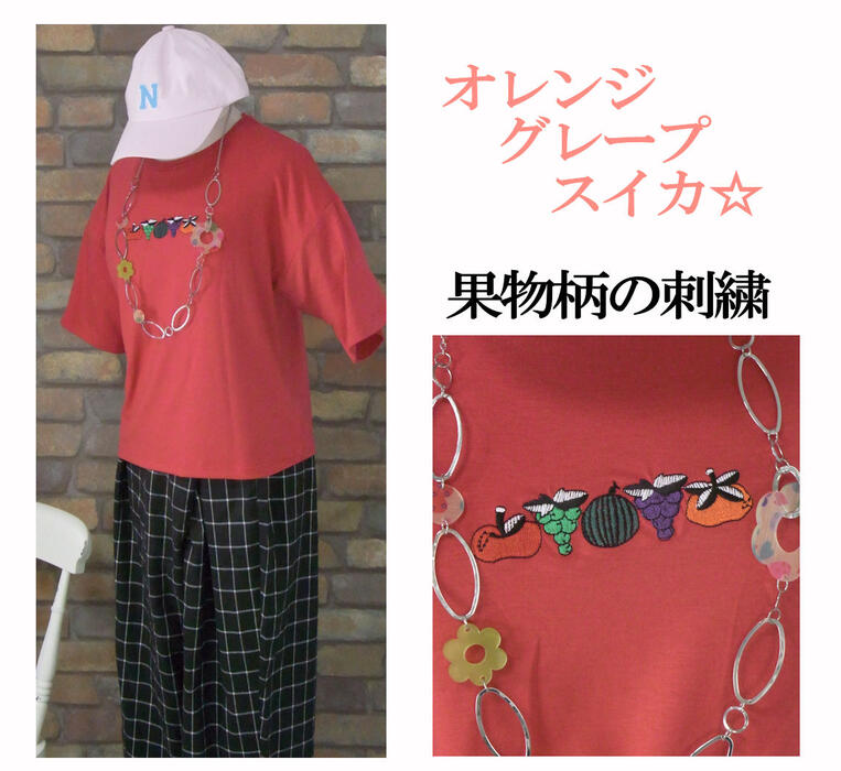 総丈 55cm 着丈 51cm 肩幅 52cm 袖丈 20cm 身幅 46cm 裾幅 47cm☆生地 生地表面 やや滑りいい 生地裏側 やや滑りいい 生地全体 やや柔らか 保形状性 なし 厚み 並み 伸縮性 あり 透け感 (平置き)かすか(光にかざす)わずか 重み 並み 光沢感 わずかにつやある生地に光沢感ある刺繍 ポケット なし 柄造り 果物は刺繍(^^)果実が好き!☆《→用語はこちらをご参照ください》