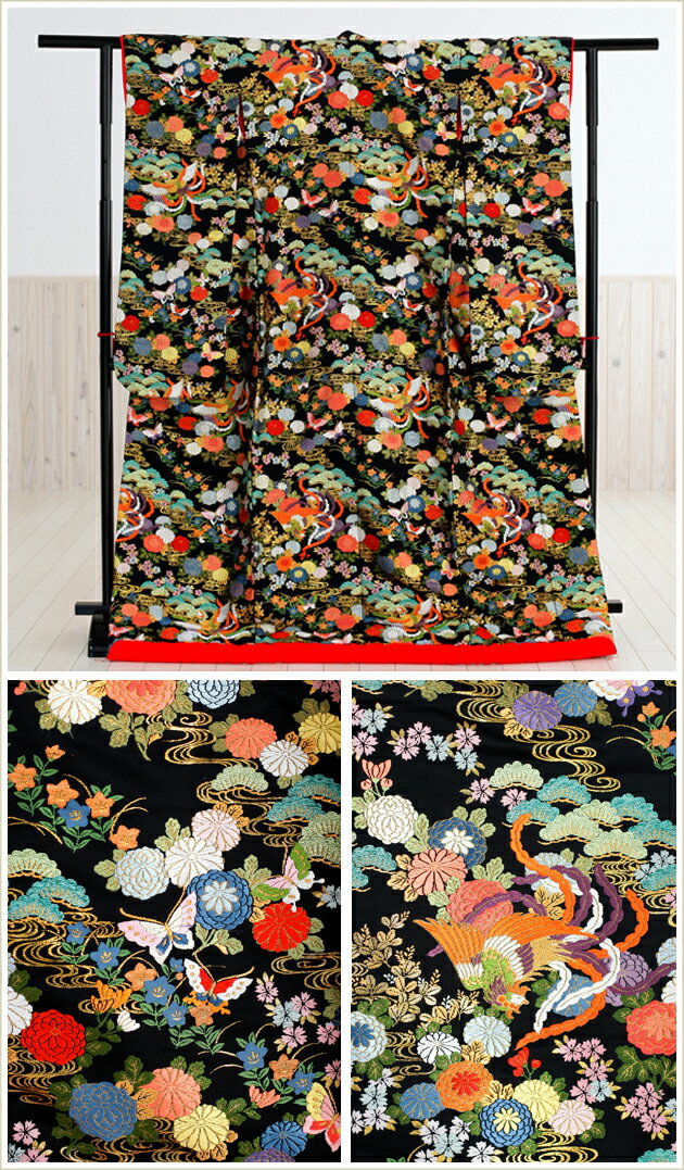 【品 番】 iu005(黒地飛翔鳳凰に慶びの華/花嫁衣装・色打掛レンタル/結婚式・お色直し・前撮り)