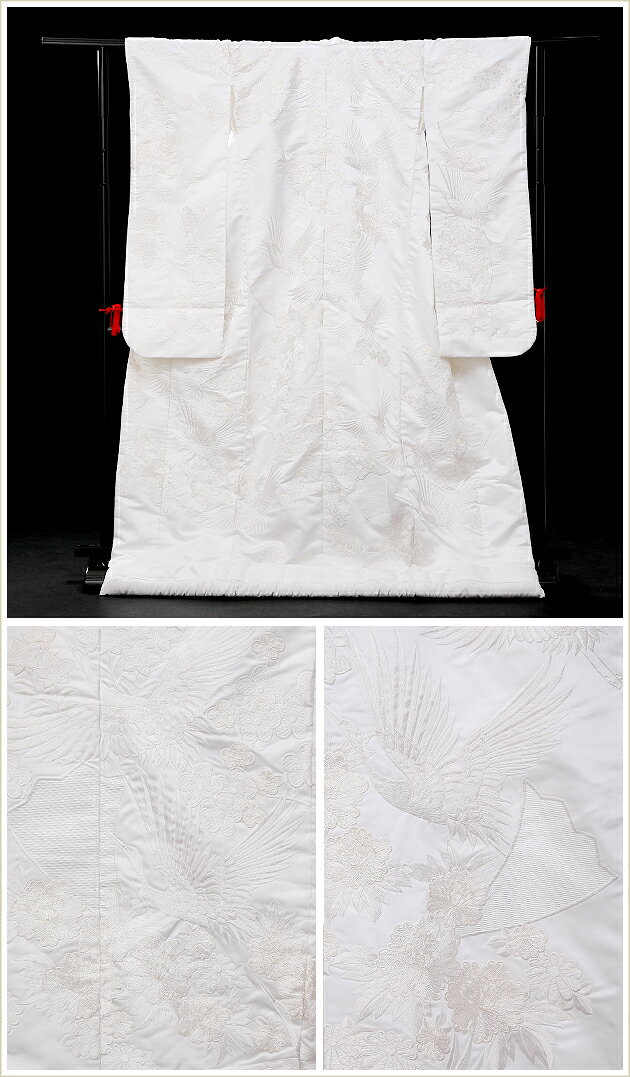 【品 番】 su002(白交織祝華に鶴/花嫁衣装の白無垢・紋付フルセットレンタル/神前結婚式/人前式)