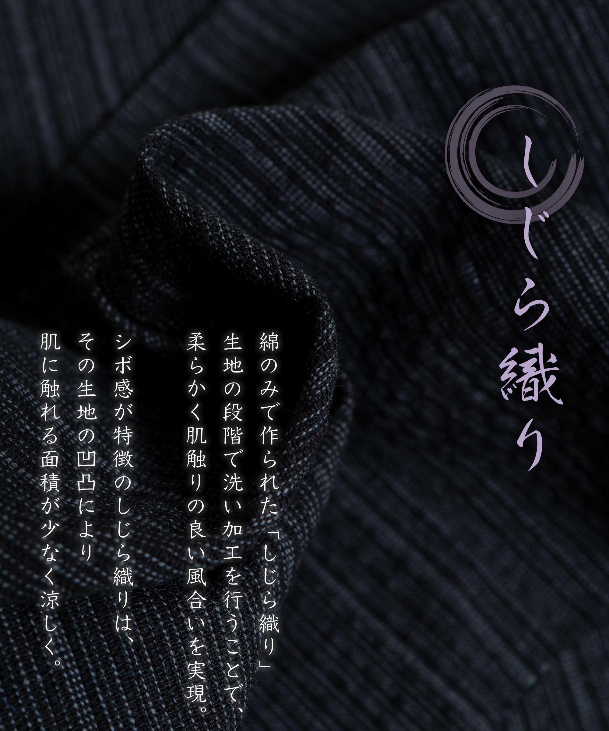 シボ感が特徴のしじら織りは、その生地の凹凸により、肌に触れる面積が少なく涼しく快適にしてくれます。