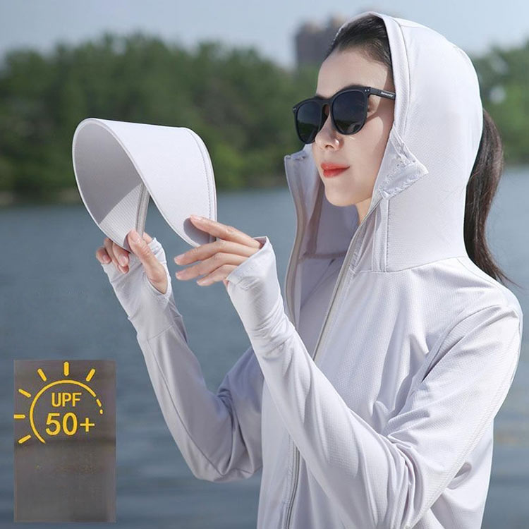 サムホールデザインサムホール設計により、親指を通せる穴がついており、手の甲まで日焼けを防止できます。