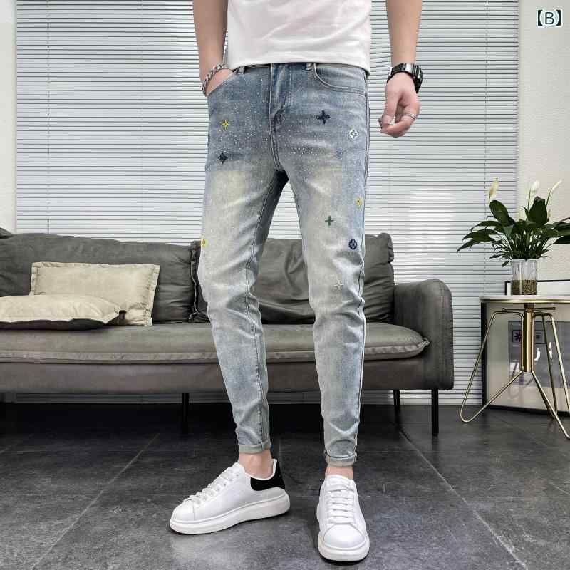 2025年春の新作ファッショントレンド刺繍付きビーズ付きデニムパンツ。