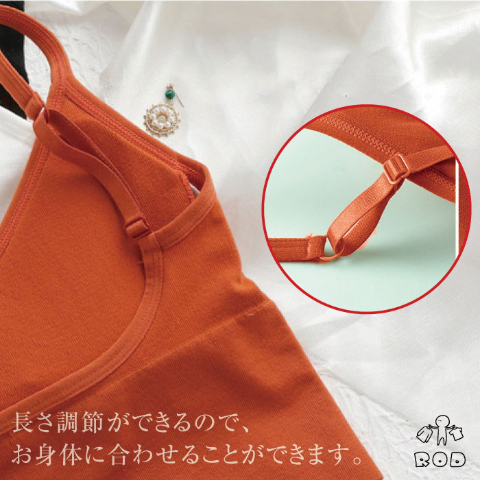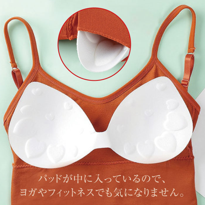 バストに負担が掛からないノンワイヤー仕様のカップ付きキャミソールです。