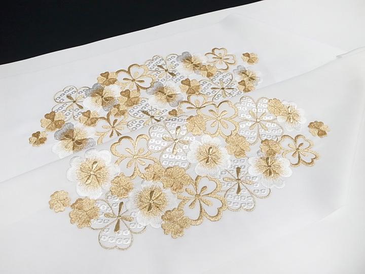 日本製 花 桜 鹿の子振袖刺繍半襟 白 g949