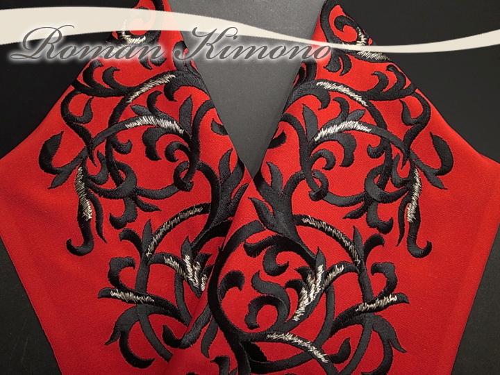 日本製 唐草振袖刺繍半襟 赤 g963