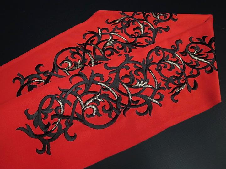 寸法 長さ:114cm 幅:16.5cm 素材 生地:ポリエステル100% 刺繍糸:レーヨン100%(金属糸使用の場合あり) 日本製 Silelly シルエリー 新・合・繊 状態 新品のキレイなお品です。