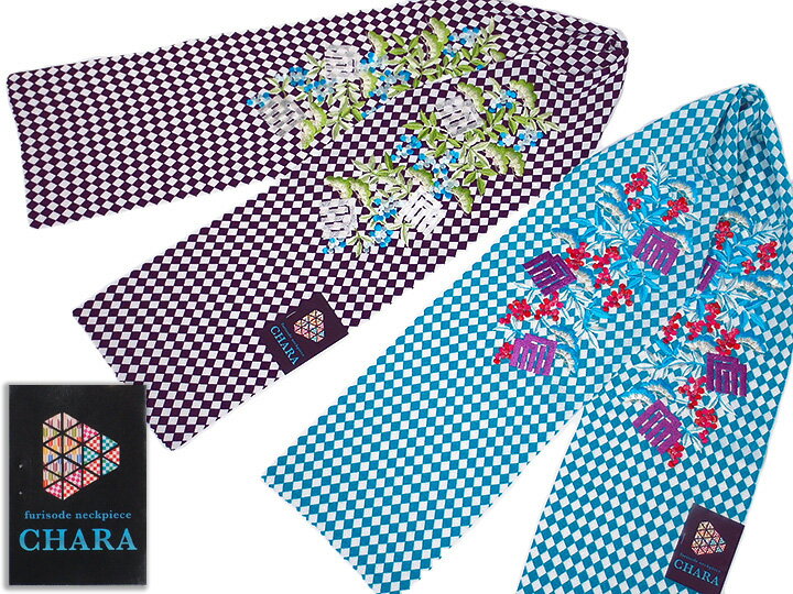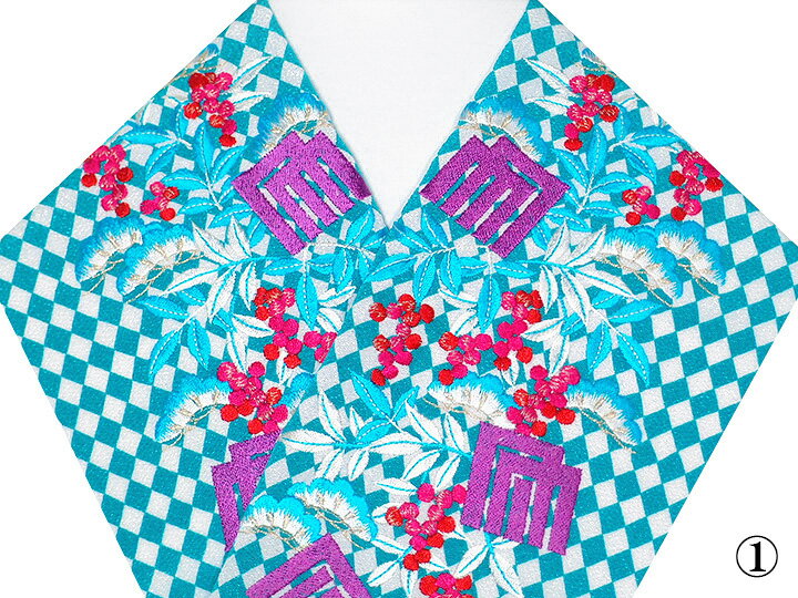 ◆素材 生地:ポリエステル100% ちりめん 刺繍糸:レーヨン100% 金属糸使用 日本製 CHARA ◆商品説明 おしゃれな菱の市松柄の地に、南天の実と源氏香を刺繍で表した振袖用半衿です。