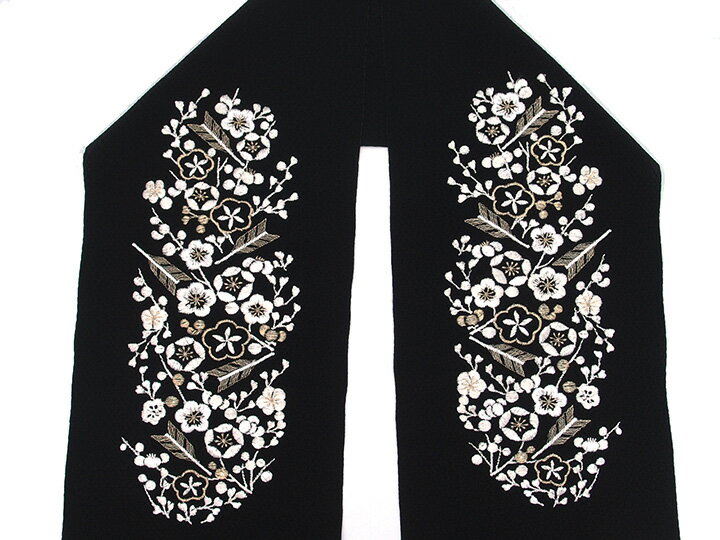 ◆素材 生地:ちりめん ポリエステル100% 刺繍糸:レーヨン100% 日本製 ◆商品説明 梅と矢羽柄の半衿です。