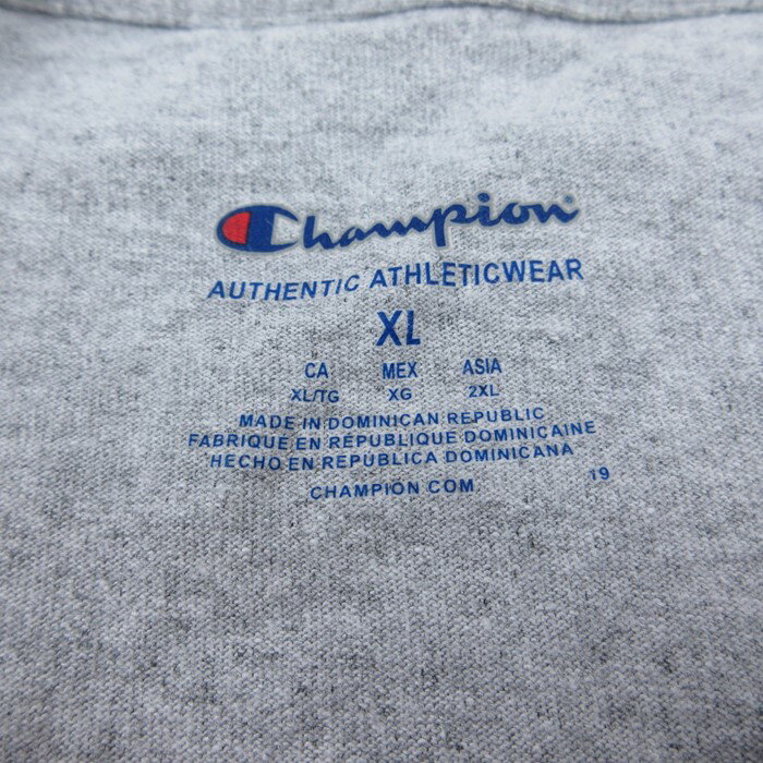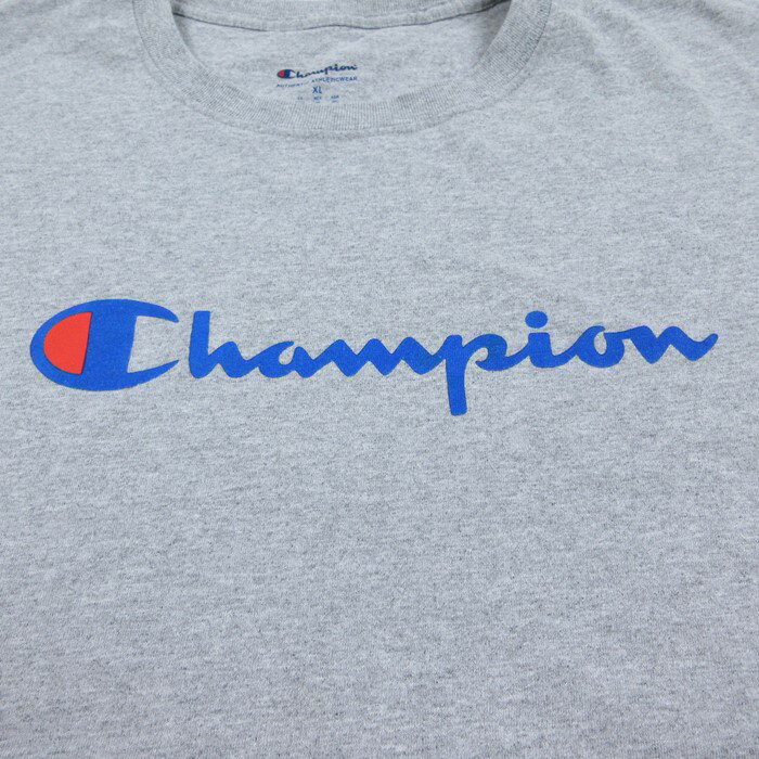 【商品名】 XL★古着 チャンピオン Champion 半袖 ブランド Tシャツ メンズ ビッグロゴ クルーネック グレー 霜降り
