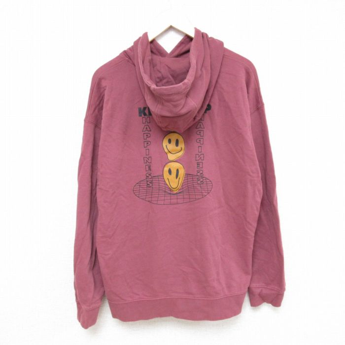 【商品名】 L★古着 アリゾナジーンズ 長袖 トップス パーカー メンズ 00年代 00s NO WORRIES スマイル コットン エンジ