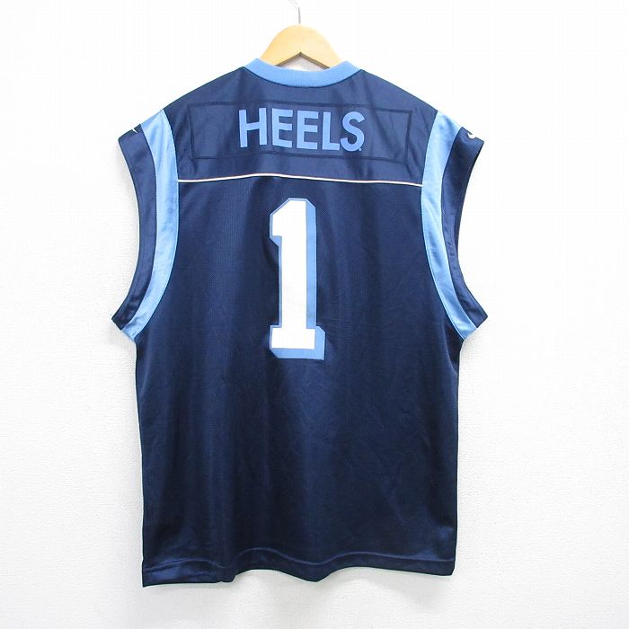 【商品名】 XL★古着 ナイキ NIKE ノースリーブ ビンテージ Tシャツ メンズ 00年代 00s ノースカロライナターヒールズ 1 大きいサイズ ロング丈 Vネック 紺他 ユニフォーム ゲームシャツ