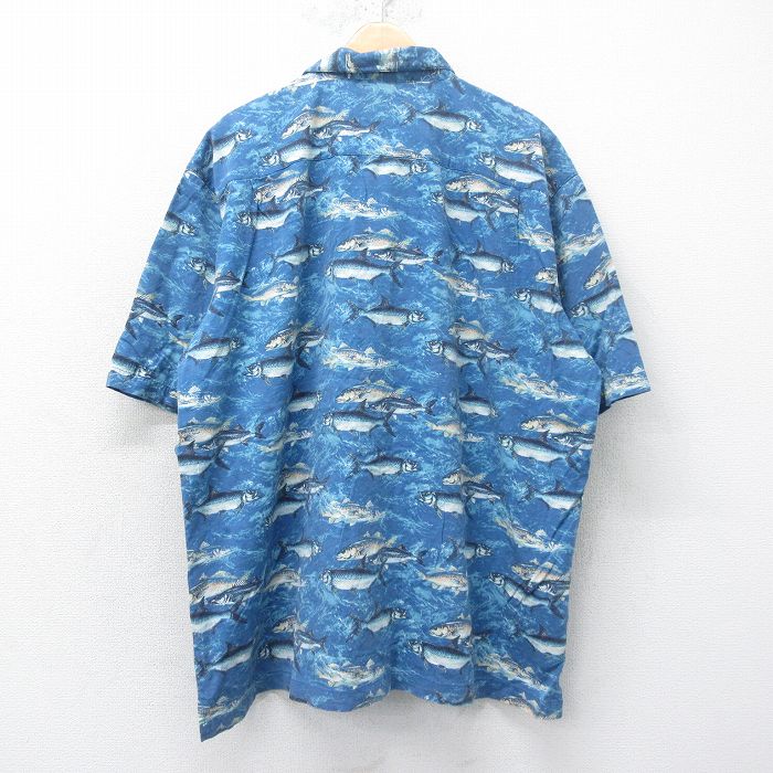 【商品名】 XL★古着 半袖 シャツ メンズ 魚 大きいサイズ 開襟 オープンカラー 紺他