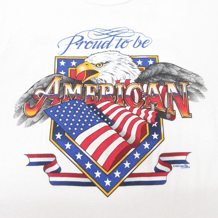 【商品名】 L★古着 半袖 ビンテージ Tシャツ メンズ 00年代 00s 鳥 星条旗 アメリカン コットン クルーネック USA製 白