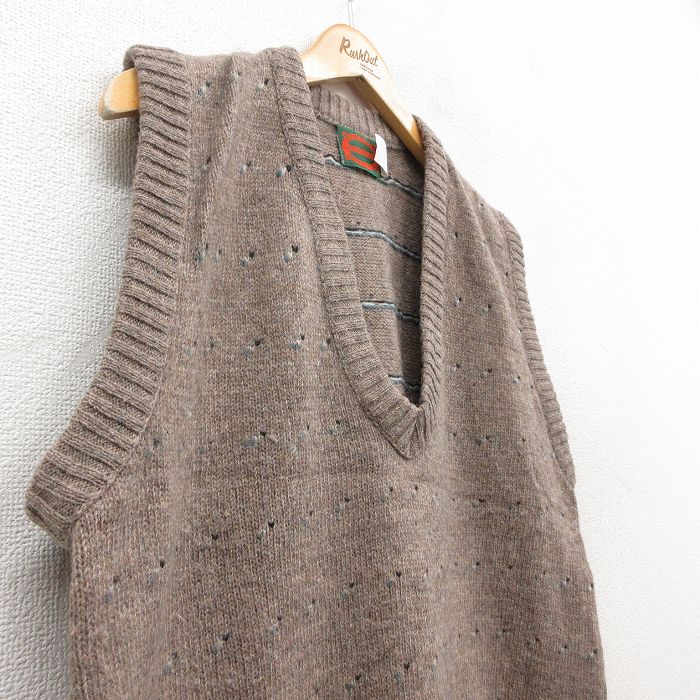 【商品名】 M★古着 ニット ベスト メンズ 90年代 90s ウール Vネック USA製 茶