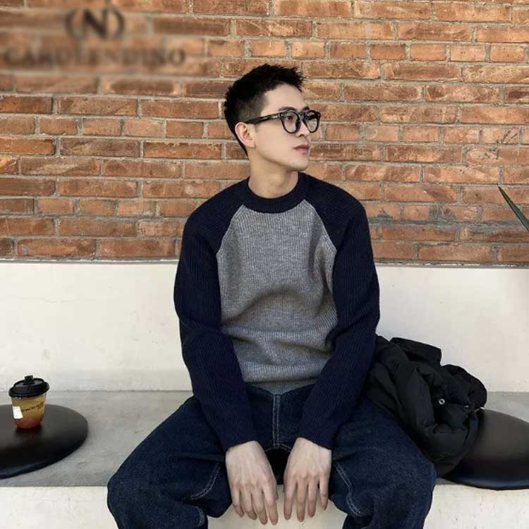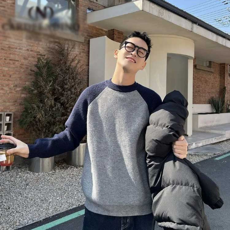 シンプルなデザインでメンズのカジュアルなニットプルオーバーです。