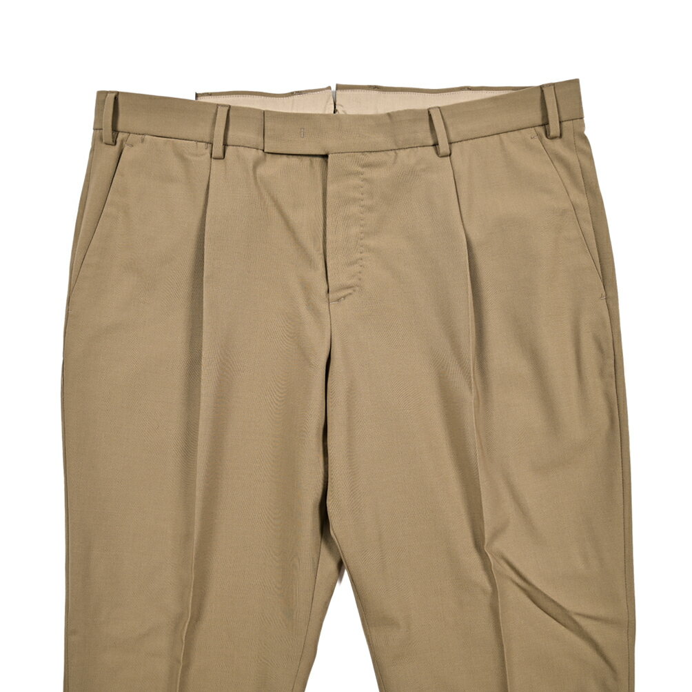 ■状態:新品未使用原産国Made in ROMANIA素材ヴァージンウール 95%エラスタン 5%カラー・柄ブラウン備考□国内参考価格 49,000円(税抜)□仕様EDGEREBEL FITワンタック(ワンプリーツ)ジップフライスラントポケットコインポケット裾 ダブル仕上げ(ダブル幅4cm程度)SIZEサイズ/寸法ウエスト股上股下太腿幅裾幅