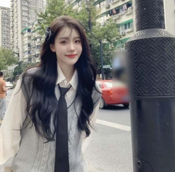 だらしなく見えないように密着させ、ニットベストの特徴である引き感を出しています。