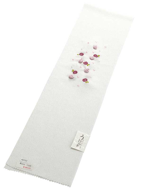 【 洗える 半衿 】バラ付き 刺繍半衿 刺繍半襟 ばら バラ 薔薇 白地半衿 刺繍半衿 振袖用 成人式 卒業式 おしゃれ着用 ししゅう半衿 《 白色生地 ・ バラ付き刺繍 》