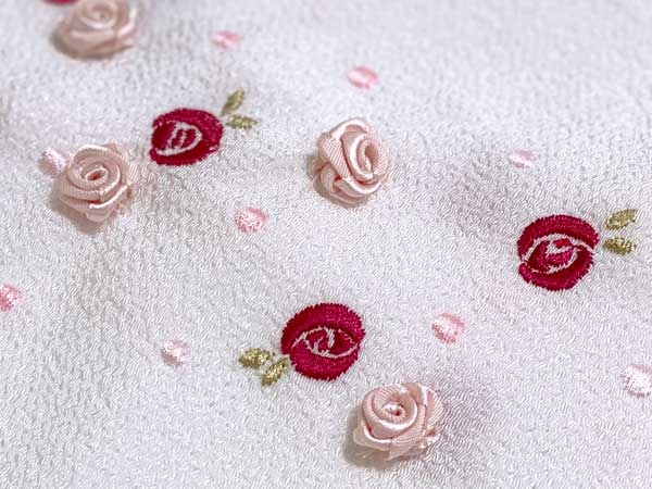 【品質表示】 生地:ポリエステル100% 刺繍糸:レーヨン100% バラリボン:ポリエステル100%