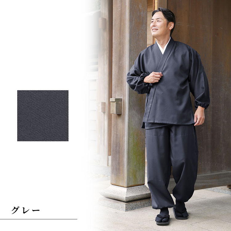 天然繊維の着心地の良さと、化学繊維の機能性の良さを併せ持つ、 普段から作務衣を着用されている寺院様も太鼓判の作務衣です。