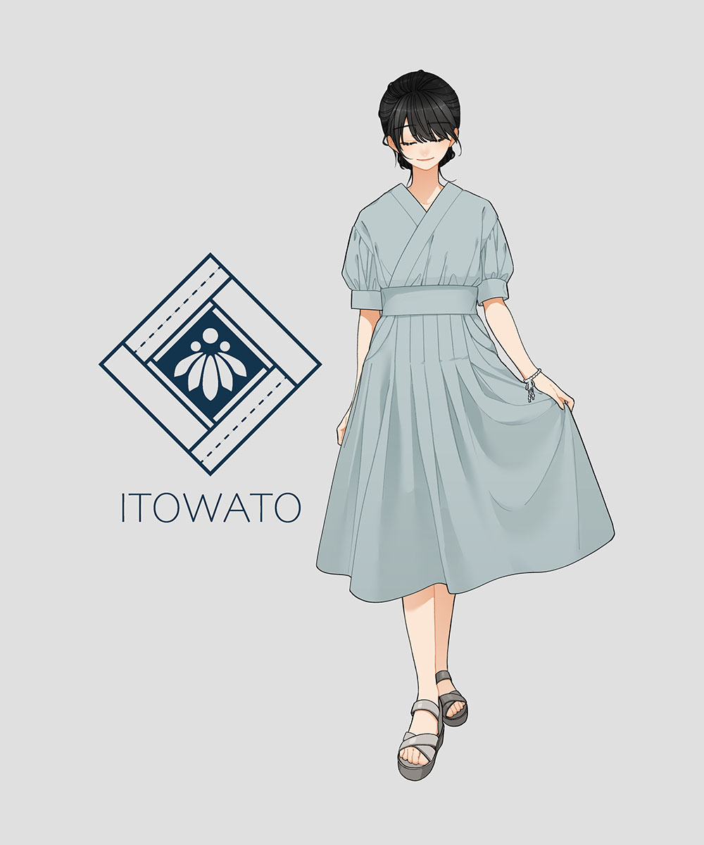【ITOWATO】ブランド〜 現代創作和服デザイナー「花月」と伝統芸術を着る会のコラボブランド モダンに着こなれる夏の和洋装! 〜おすすめ特徴〜 ●和モダンな甚平風スタイル! ●上着には胸元、内、外とボタン留めできるので綺麗なシルエットに!(調整可) ●上着パフスリーブ×和襟で和洋折衷が叶う! ●バックスタイルのタックで立体的なスタイル。