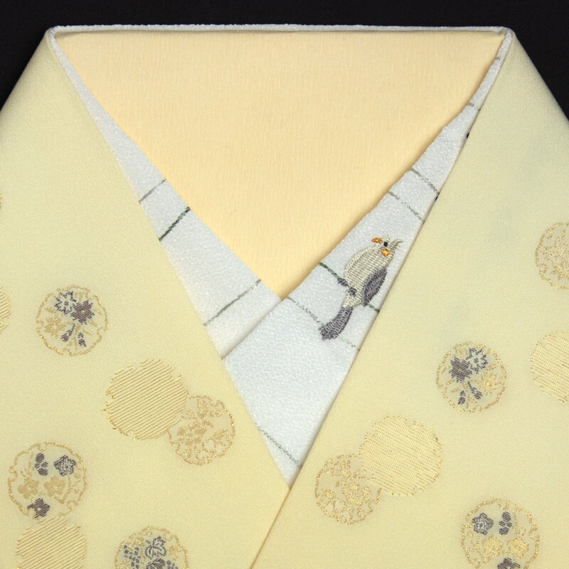 ワンポイントのオカメインコが愛らしい刺繍半衿です。