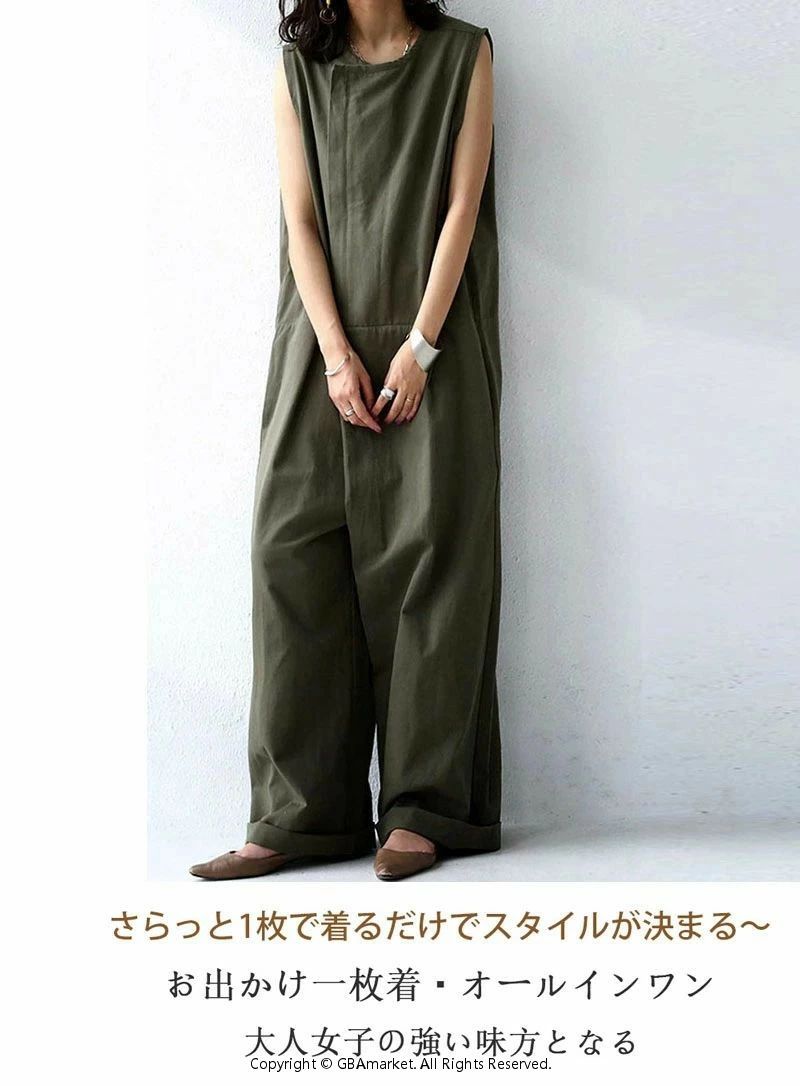 ▼▼400円OFFクーポン!▼▼ オールインワン レディース サロペット ゆったり コットン 綿 ノースリーブ カジュアル 上品 モード 羽織り ジャンプスーツ サロペ フォーマル 二次会 パーティー 大人 お洒落 20代30代40代50代60代 春夏秋冬 送料無料 オールインワン サロペット レディース オーバーシルエットで、体型もしっかりカバー。