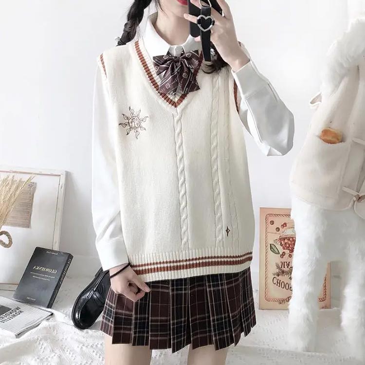 周りと差をつける♪可愛い刺繍入りスクールベスト。