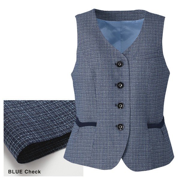 ツイード調の素材感を 明るいカラーで表現したチェック 生地名:ツイーディーチェック ポリエステル95%・レーヨン5% カーシーカシマKARSEEエンジョイENJOYオフィスウェア事務服