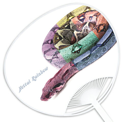 【↓↓配送に関するご注意↓↓】 地域やサイズ等により『ヤマト宅急便』か『ゆうパック』のいずれかを当店で選んで発送いたします。 爬虫類大好きという方にもってこいのインパクト大な団扇です。 虹色に彩られたカメレオン&スネーク! 熱帯へと誘ってくれそうなこのうちわで扇ぐと、 果たして暑いのか?涼しいのか?……涼しいです。 うちわのサイズ:245×345mm