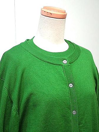 ●ランク:AB(カーデボタン横に微かなヒカッケ有り) ●サイズ:L (実寸)身幅52cm インナー身幅46cm ●備 考:アクアガレージブティックでは4,590 アクリル100% 着丈56cm インナー54cm バンブカラー(ビビッドグリーン)の滑らか素材のクールネックニットアンサンブル。