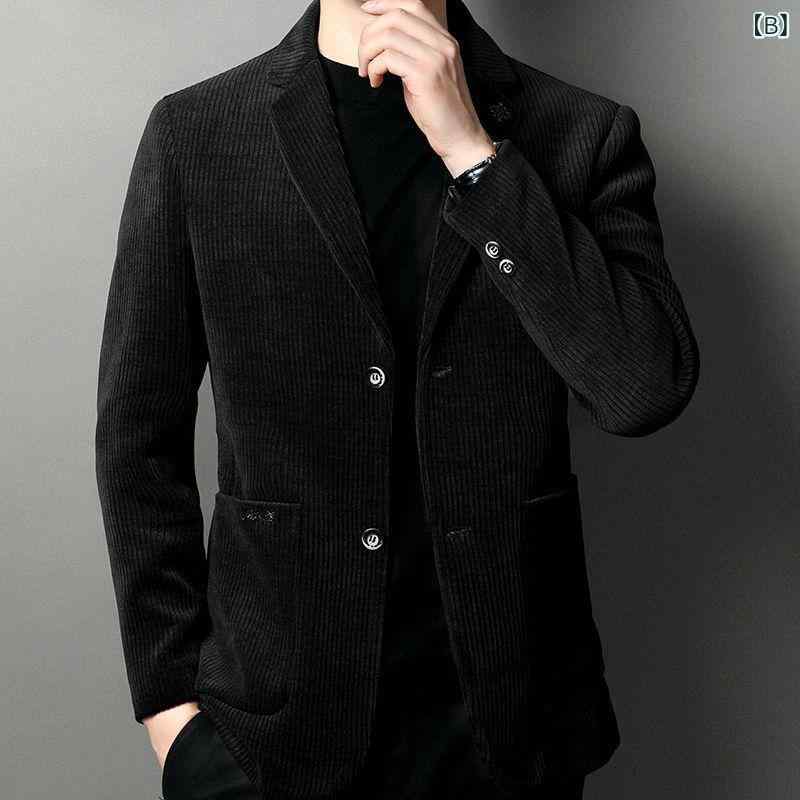 ・フロント: 2つボタンシングル・生地: コーデュロイ・主な素材: アセテート繊維、ポリエステル・着用シーン: カジュアル・襟型: ノッチドラペル・フィット: スリムフィット・厚さ: 厚手・カラー展開: イエロー、ブルー、ブラック・サイズ展開: M、L、XL、2XL、3XL、4XL・スタイル: ライトビジネス