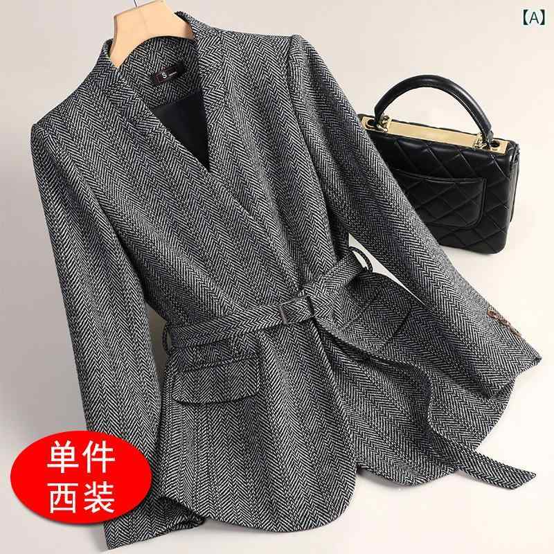 ・カテゴリ: ジャケット・スタイル: エレガント通勤・性別: レディース・主な素材: ポリエステル50-70%・副素材: ウール30-50%・生地名: ウール混紡・加工: ノーアイロン・柄: エコ・シルエット: レギュラー・着丈: 普通・ネックライン: テーラードカラー・袖丈: 長袖・袖タイプ: レギュラー袖・前立て: 1つボタン・デザイン要素: 立体装飾・カラー展開: グレー、コーヒー・サイズ展開: S、M、L、XL、XXL、XXXL