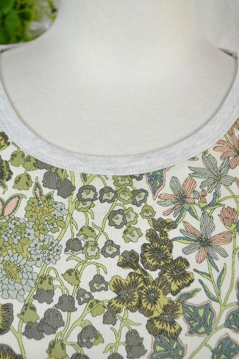ネック部分の開きも程よく長いシーズン着まわせます◎ リバティの美しい生地を堪能しつつ、毎日の着こなしに合わせやすいデザインです★ お袖や後ろ部分には、コットン100%の無地の天竺カットソーを使って、快適な着心地にこだわりました♪ 日本製もうれしいポイントです!! 美しい柄で色のトーンが魅力あるEdna(エドナ) ♪ 美しさ、謙虚、幸せの復活を象徴するスズランに、愛を象徴するハコベ、永遠の美を表すニオイアラセイトウ、キャンディタフト、ツタを加えて手描きして色づけをした柄です。